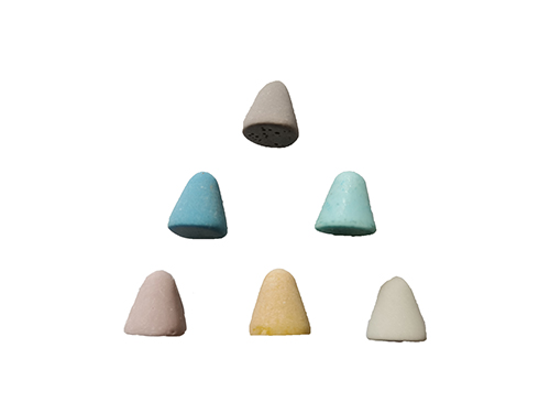 圓錐形塑膠研磨石,適用于死角較少的產品、去毛邊、倒角。